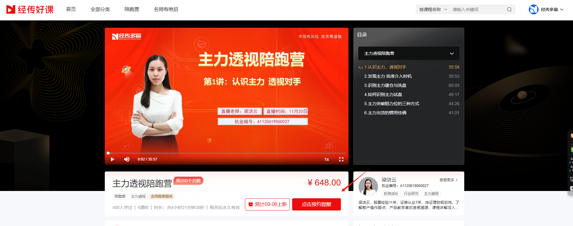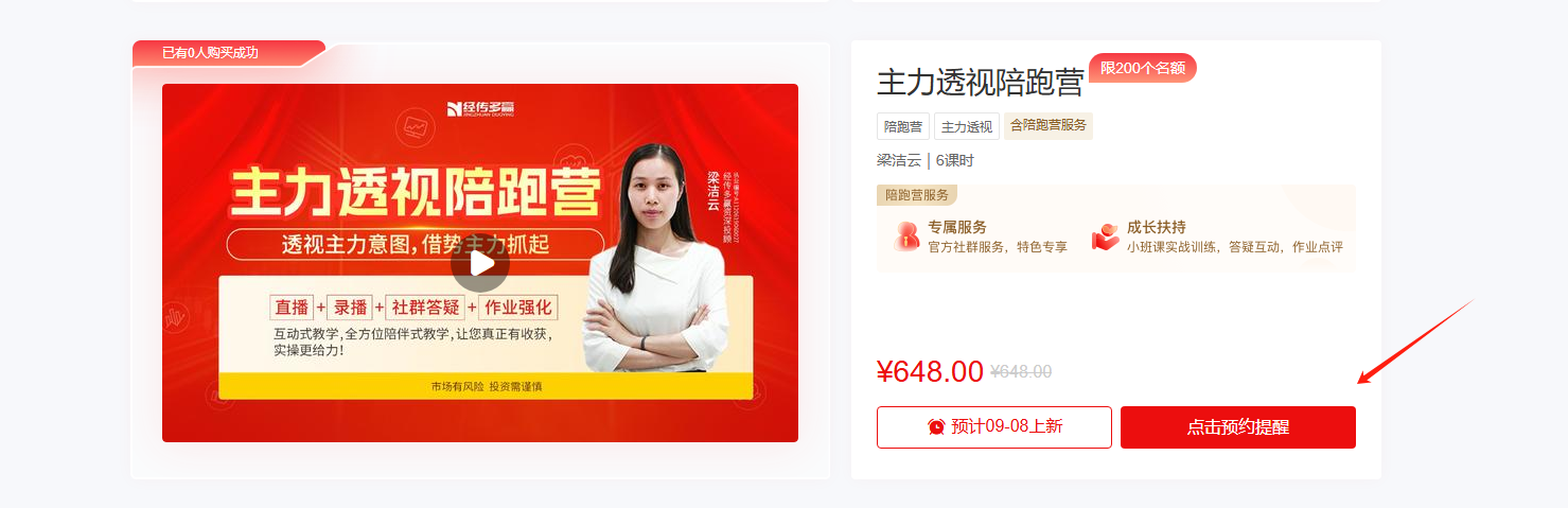 答:可以预约提醒。陪跑营预告期间,即可预约提醒。你只需: